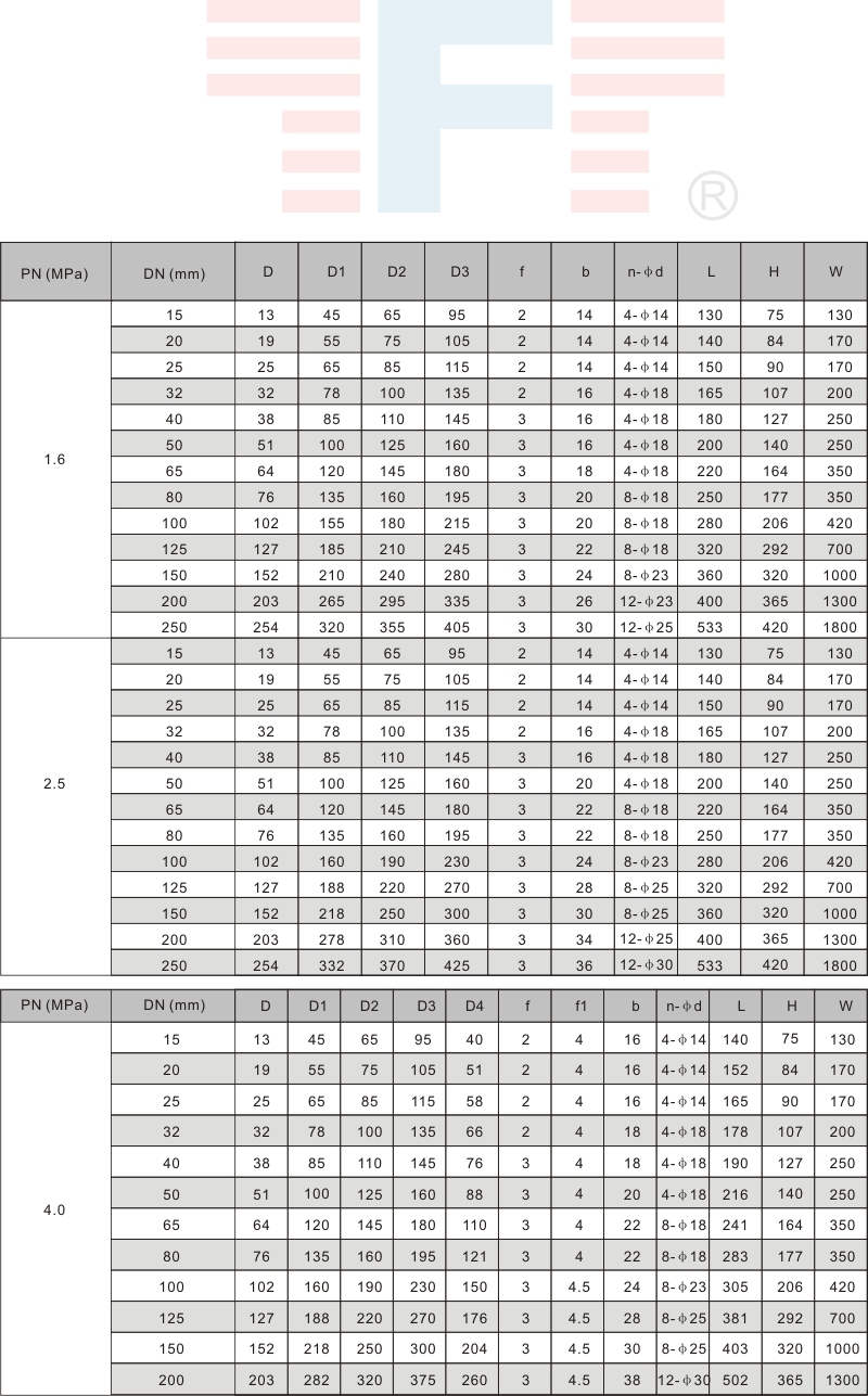 公称通径 DN15-500(mm) 压力范围 1.0-2.5(Mpa)